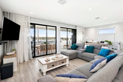 Cross River Retreat – Mannum Set in the peaceful surrounds of Mannum Waters, Cross River Retreat is a spacious, newly built two-storey coastal-style holiday home designed for relaxed family escapes and group getaways. Accommodating up to 13 guests (with optional additional bedding), the home offers five generous bedrooms, 2.5 bathrooms, and two separate living areas — ideal for adults to unwind upstairs while children enjoy their own space downstairs. Enjoy outdoor living on the large entertaining deck with BBQ, pizza oven and sunset views, or take advantage of the nearby marina, community river lawn and boat ramp just a short walk away. The home also features ducted air-conditioning, Wi-Fi, Netflix, hotel-quality linen, and plenty of parking for cars, boats or a caravan. With games, a trampoline, basketball, and a short drive to Mannum township, Cross River Retreat offers the perfect balance of comfort, space and river-side adventure.