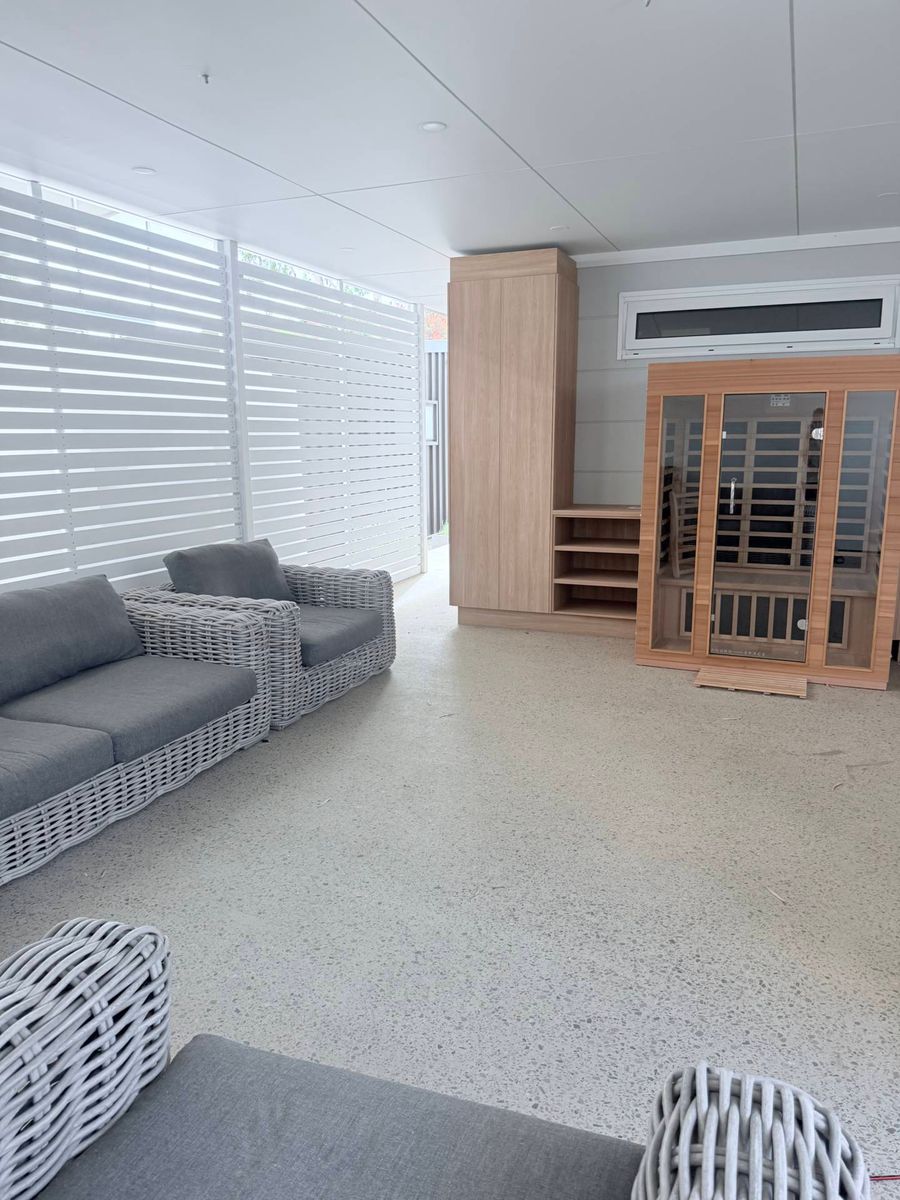 • Outdoor gym, infrared sauna, cool plunge