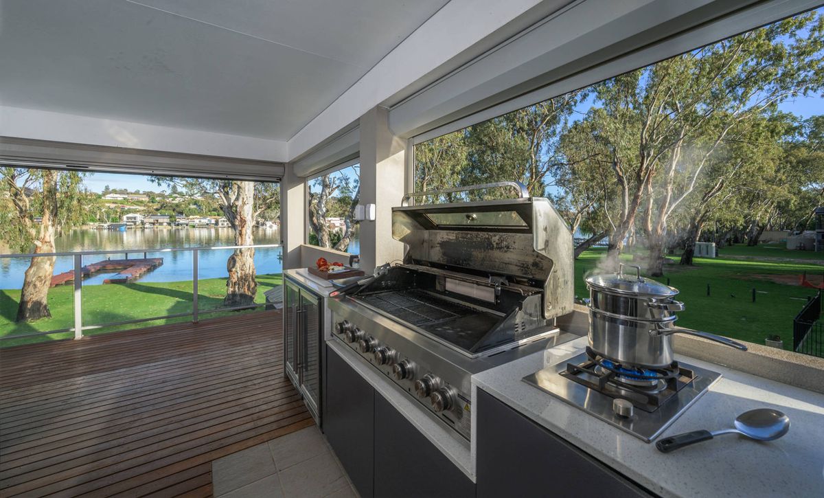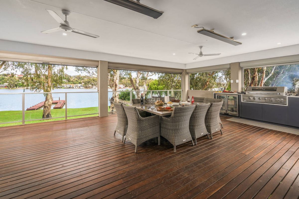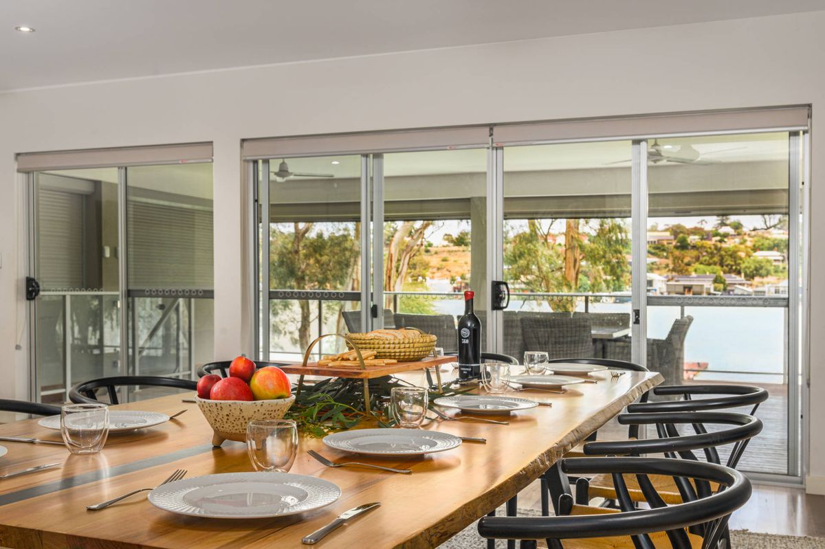 Discover the perfect blend of modern comfort and natural beauty at this stunning riverfront escape in Bolto Reserve, Mannum. This beautifully designed four-bedroom home offers uninterrupted views across the river to Mannum and provides everything you need for a relaxing and stylish retreat. Inside, the open-plan living area is spacious and welcoming, featuring high-quality furnishings and contemporary amenities that make it feel like a true home away from home. Step outside to the sheltered alfresco dining area, ideal for enjoying meals while soaking in the peaceful surroundings. The outdoor space is equally impressive, with expansive lawns that stretch down to an oversized jetty—perfect for securing your boat, casting a line, or simply unwinding by the water.