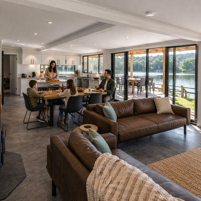 Inside, you’ll find a stylish and modern interior, thoughtfully furnished for comfort and functionality. The open-plan living, dining and kitchen area flows effortlessly to the deck, creating a seamless indoor-outdoor lifestyle.