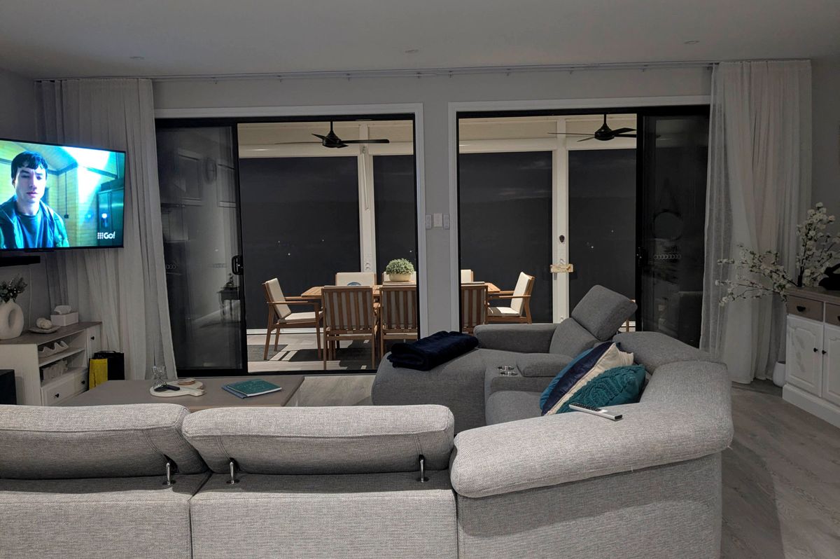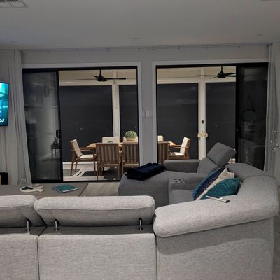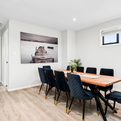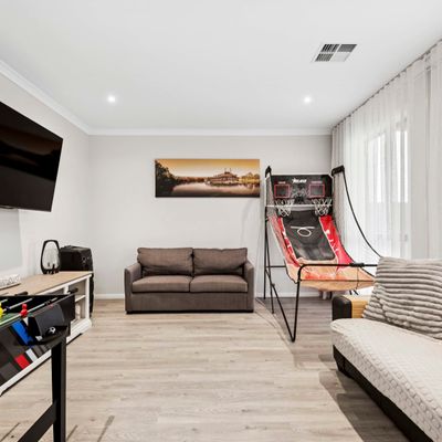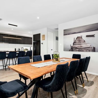 Escape to luxury at 130 Riverlane, Mannum – a spacious two-story holiday home sleeping up to 16 guests across 6 beautifully appointed bedrooms. Enjoy modern open-plan living with sleek kitchen appliances, recliner lounges, and expansive windows offering breathtaking river views. Entertain with ease in the dedicated bar area, large lounge with 8-ball table, big-screen TVs, and a high-quality coffee machine. Outdoors, relax under shady trees, dine alfresco, or gather around the fire pit on the lush lawn leading to direct river frontage. With a boat ramp and riverfront lighting that creates a magical evening ambiance, it’s the perfect setting for memorable getaways.