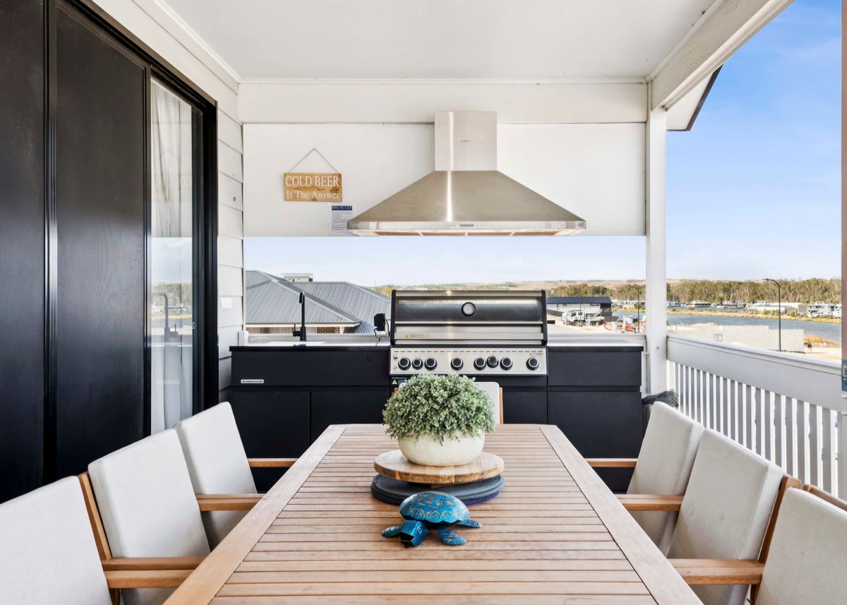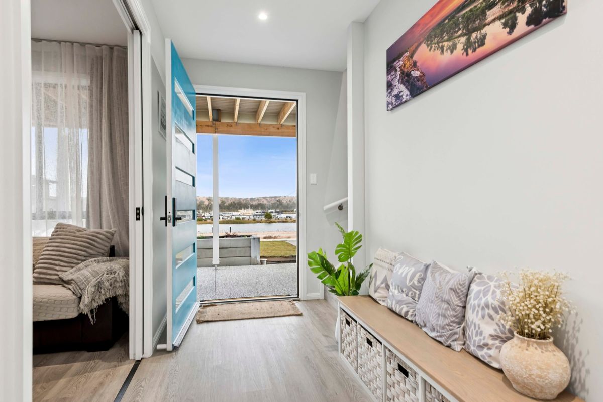 Modern Waterfront Escape – Mannum Waters, South Australia Wake up to stunning sunrises and serene water views at this beautifully appointed 4-bedroom holiday home in the heart of Mannum Waters. Designed for comfort and relaxation, this modern property features open-plan living with stylish fittings, contemporary furnishings, and plenty of natural light throughout. The spacious main bedroom includes a private ensuite, while the remaining rooms are well-suited for families or groups. Step outside to the expansive deck overlooking the peaceful houseboat moorings—perfect for morning coffees, afternoon BBQs, or simply watching the river life go by. Situated on a quiet stretch of water, it’s an ideal location for kayaking, paddleboarding, or launching from the nearby boat ramp. With undercover parking and just a short drive to Mannum’s town centre and main river channel, this property is the perfect blend of convenience, comfort, and riverside charm. Whether you're planning a weekend escape or a longer stay, this Mannum Waters retreat offers the ultimate in river relaxation.