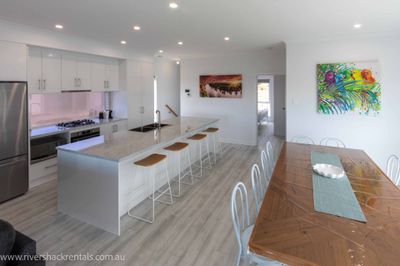 Enjoy a relaxing riverfront getaway at this modern two-story holiday home in Bolto Reserve, Mannum. With four bedrooms and open-plan living, it’s ideal for families, groups, or couples. The spacious deck overlooks the Murray River, offering a great spot to unwind or entertain. A private jetty and lawned area provide direct river access for fishing, boating, or enjoying the water. A nearby boat ramp adds extra convenience for bringing your own watercraft. Located just minutes from Mannum’s shops, cafes, and pubs, this property combines comfort, space, and a great location for your next holiday. Whether you're after adventure or a quiet break, this home is a great base to enjoy all the Murray has to offer.